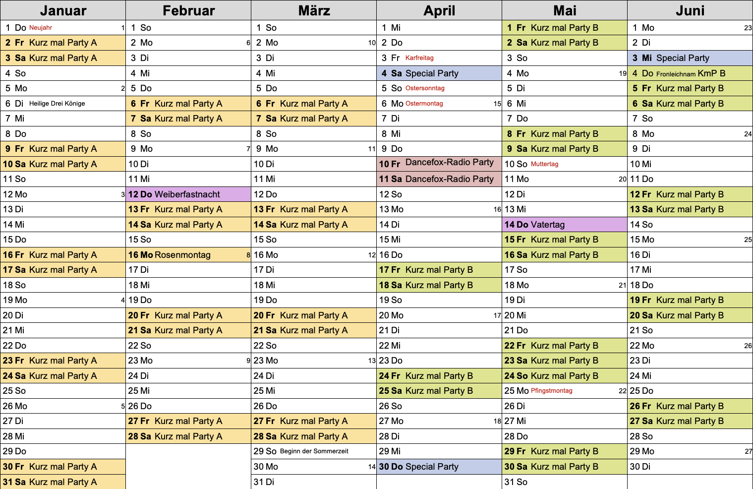 Informationen zur Party:
